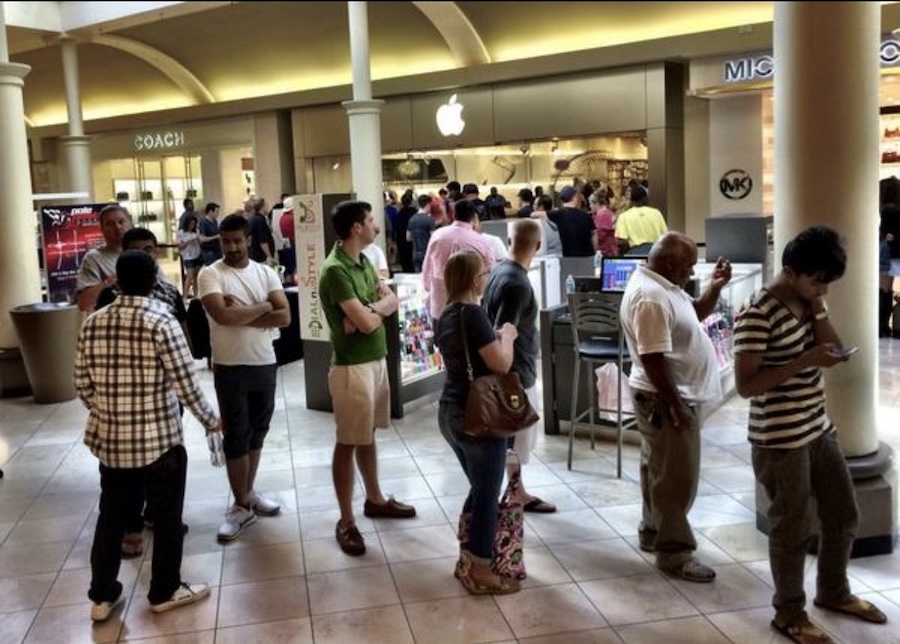The line at Penn Square Mall during an Apple iPhone launch in roughly 2010l (Photo by Jim Stafford)