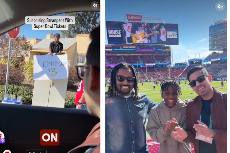 On Super Bowl Sunday he drives past a kid who has set up a lemonade stand just blocks from Levi’s Stadium in Santa Clara, Calif., site of this year’s Super Bowl. He slows down and apologizes to the kid because he has no cash to pay for a lemonade. As he drives off, the kid runs up to the car window holding a complimentary cup. Omar rewards him and his dad with Super Bowl field pass and tickets and ushers them into the stadium.