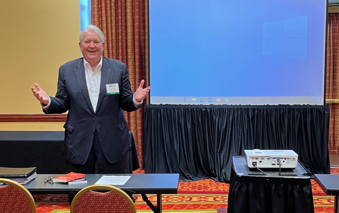 Mike Turpen before leading an educational session at a convention last week in Norman.