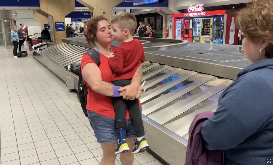Our daughter, Sarah, is reunited with her son, Solomon, at DFW airport