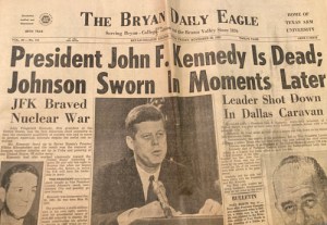 Nov. 22, 1963 — JFK assassination. This was an incredibly traumatic event both for the nation and a 10-year-old me. I was sitting in a 5th grade classroom at Crockett Elementary in Bryan, Texas, when we all heard the news. My teacher, Ms. Skrivanek, cried. I thought of nothing but that event for weeks.